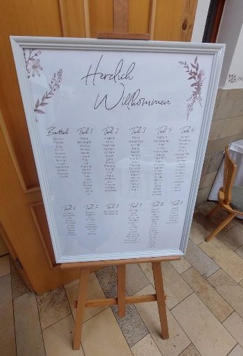 Weißer Bilderrahmen, ideal für euren Sitzplan oder als Tagesablauf, Menüliste etc.