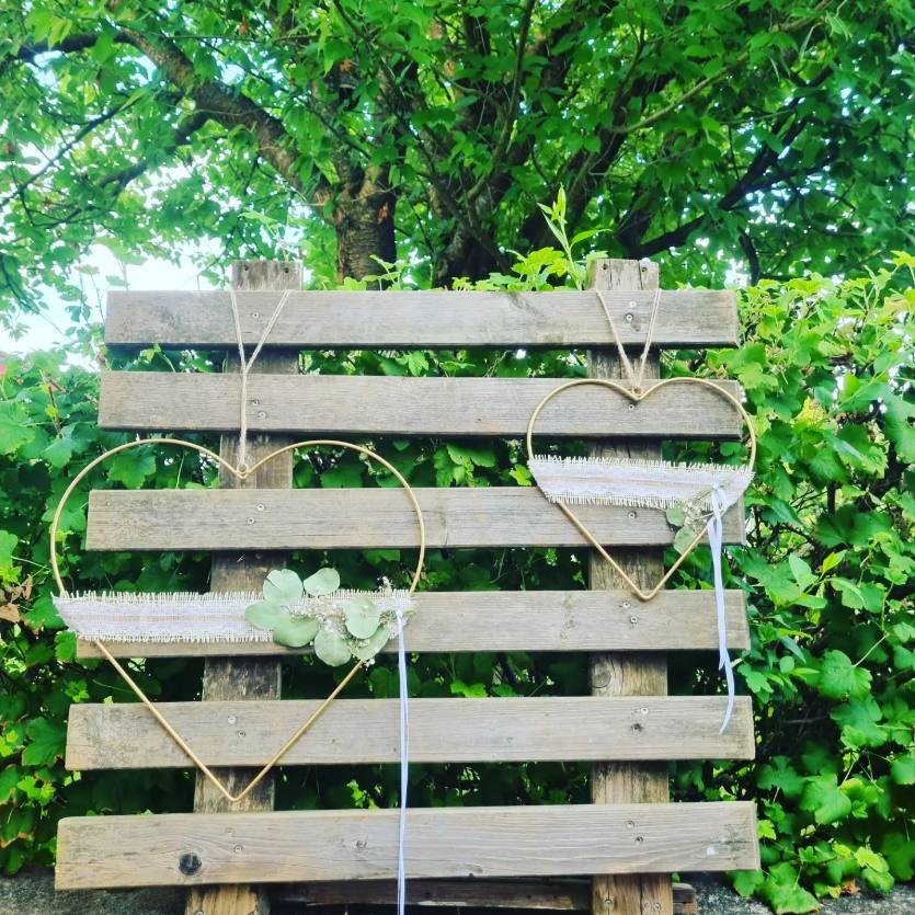 Herzreifen aus gold groß mit Dekoband und Trockenblumen